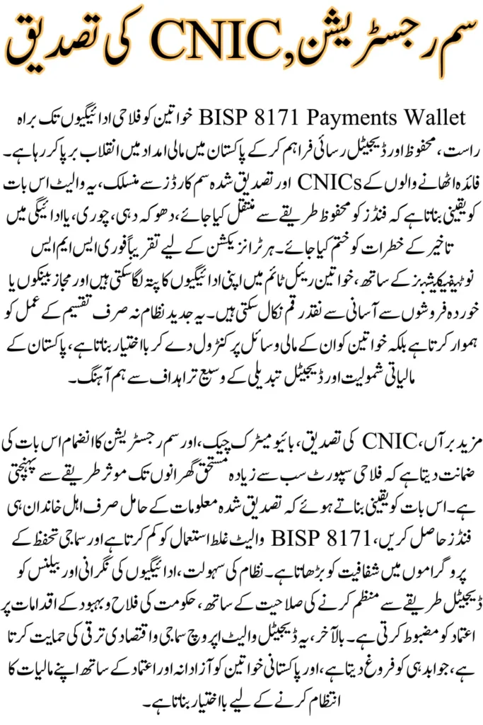 Correct SIM registration is crucial for receiving BISP 8171 wallet payments without delays.