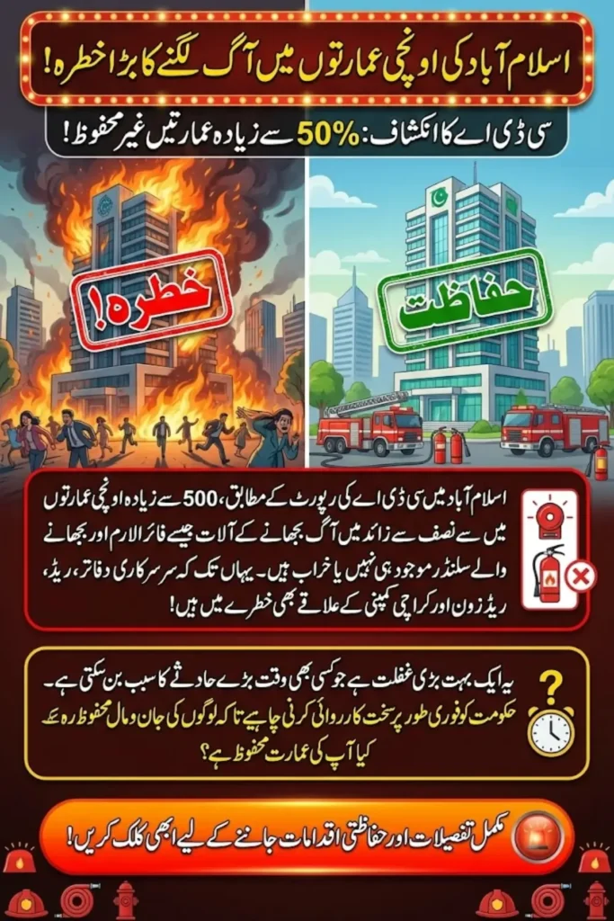 Islamabad fire safety has emerged as a serious concern after an initial survey by the Capital Development Authority revealed widespread violations across the city. The findings highlight gaps in safety preparedness at a time when high-rise construction is rapidly increasing.