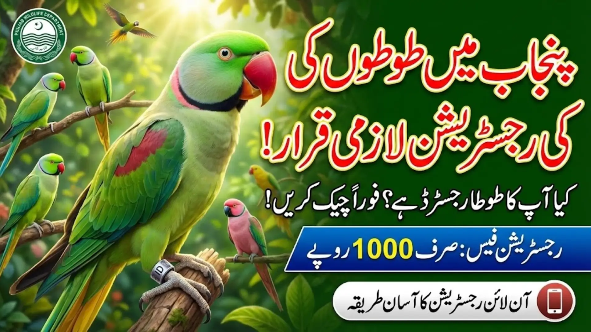 The mandatory parrot registration in Punjab is a vital step to protect endangered and exotic parrot species. By registering Alexandrine, Rose-ringed, Plum-headed, and Grey-headed parrots, owners help the Wildlife Department monitor captive populations and prevent illegal trading. The Rs 1,000 registration fee per bird supports conservation efforts and ensures compliance with provincial wildlife laws. Timely registration also safeguards owners from fines, confiscation, or legal action.